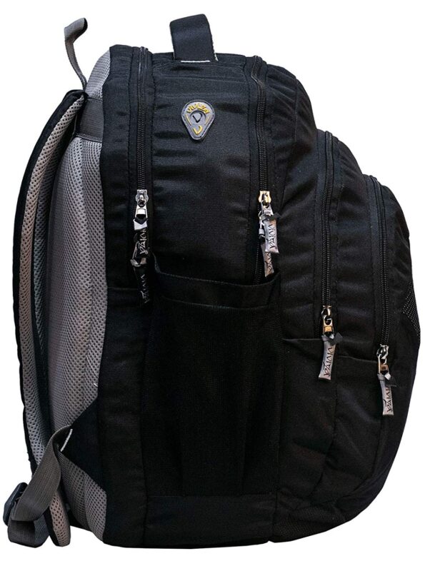 Highly durable Strong Laptop Backpack Bag for upto 15.6 inch Laptop Perfect for the daily commute or occasional travel, this strong backpack is loaded with pockets and compartments to hold all of your most important items. The V-005 15.6 inches Premium Laptop Backpack is made from Polyester fabric and features a well organized design with high quality fittings, a well padded back panel and ergonomic shoulder straps for complete comfort Viviza V-005 laptop backpack is perfect laptop bag for you,Its cushoined laptop pocket keep your laptop sucurely tight and protected while you are on the move.This laptop backpack suits your style & is very comfortable to carry,its ergonomics and makes you forget the load you are carrying, well padded shoulder straps ease the carrying Compartments & Pockets:Three main Compartments and two large front Pocket,Two side zipper Pocket with Water Bottle Compatible laptop Size: Upto 15.6 inches