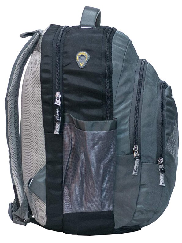 Highly durable Strong Laptop Backpack Bag for upto 15.6 inch Laptop Perfect for the daily commute or occasional travel, this strong backpack is loaded with pockets and compartments to hold all of your most important items. The V-005 15.6 inches Premium Laptop Backpack is made from Polyester fabric and features a well organized design with high quality fittings, a well padded back panel and ergonomic shoulder straps for complete comfort Viviza V-005 laptop backpack is perfect laptop bag for you,Its cushoined laptop pocket keep your laptop sucurely tight and protected while you are on the move.This laptop backpack suits your style & is very comfortable to carry,its ergonomics and makes you forget the load you are carrying, well padded shoulder straps ease the carrying Compartments & Pockets:Three main Compartments and two large front Pocket,Two side zipper Pocket with Water Bottle Compatible laptop Size: Upto 15.6 inches
