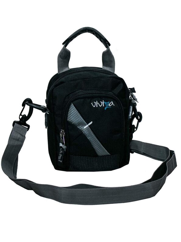 Viviza polyester Sling Bag or Pouch for travel, work or both. This bag contains 2 main compartments and 2 smaller compartment for small items. Shoulders handles and hand carry handles are both provided supported by sturdy hooks. 2.5 liters Type-Sling Bag, Material-Polyester and Fabric Product Dimensions: 7 X 3.5 X 6(Inches) 2 Compartments and 2 smaller compartment for small items. Warranty: 18 month Warranty against manufacturing defects.